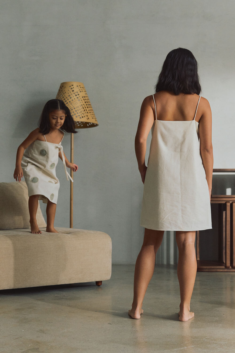 Little Pierra Dress / Heathered Oat & Stone Grey Polka