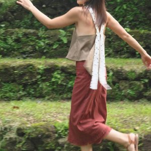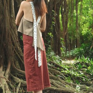 True to size. Designed with a deep cut back complemented by a cascading detail. Back ribbon ties can be left loose or tied into a bow. Semi-cropped length, best worn with our high waist bottoms.