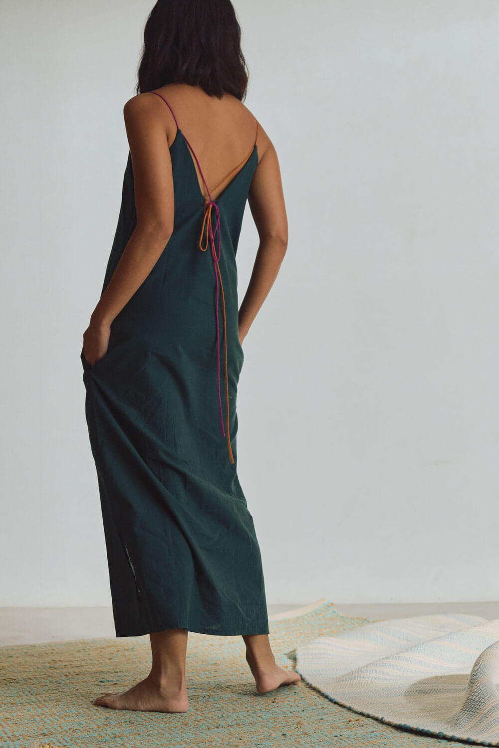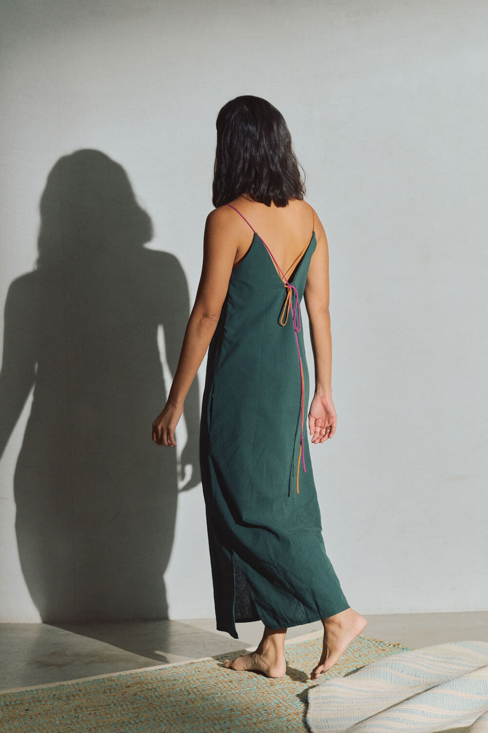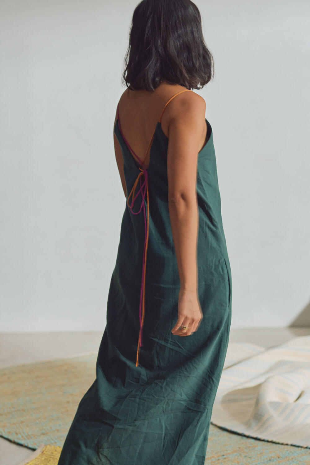 Kaya Maxi Dress (Skinny Straps) / Pine w/ Multicolor Straps