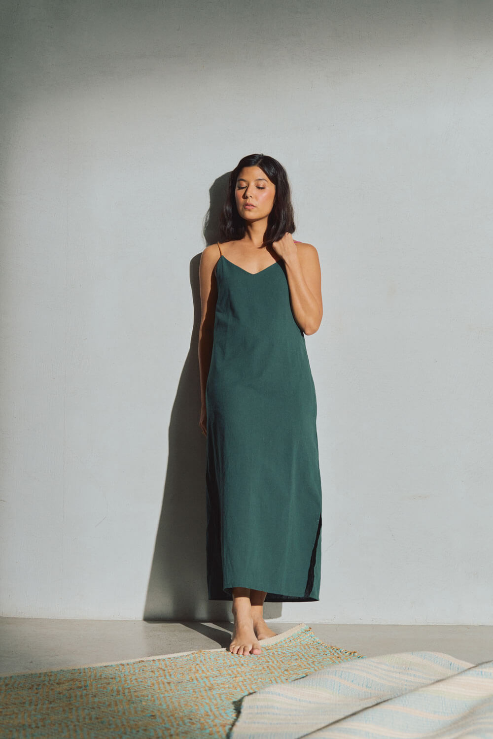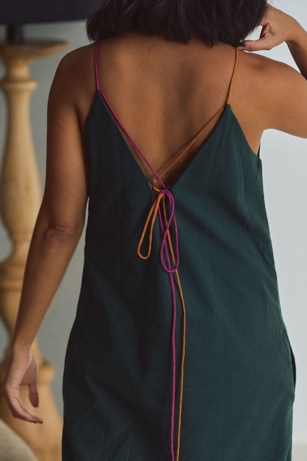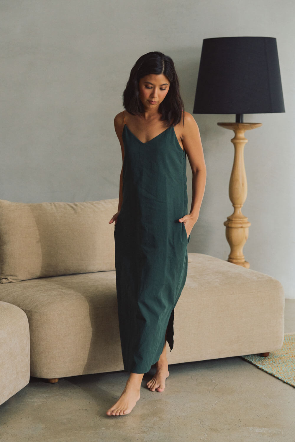 Kaya Maxi Dress (Skinny Straps) / Pine w/ Multicolor Straps