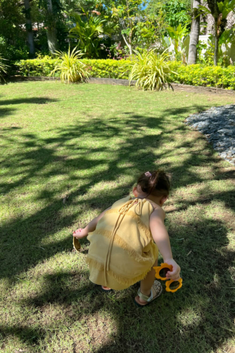 True to size. Semi-A-line silhouette dress with side zipper closure. When little one outgrows this, can be used as a top.