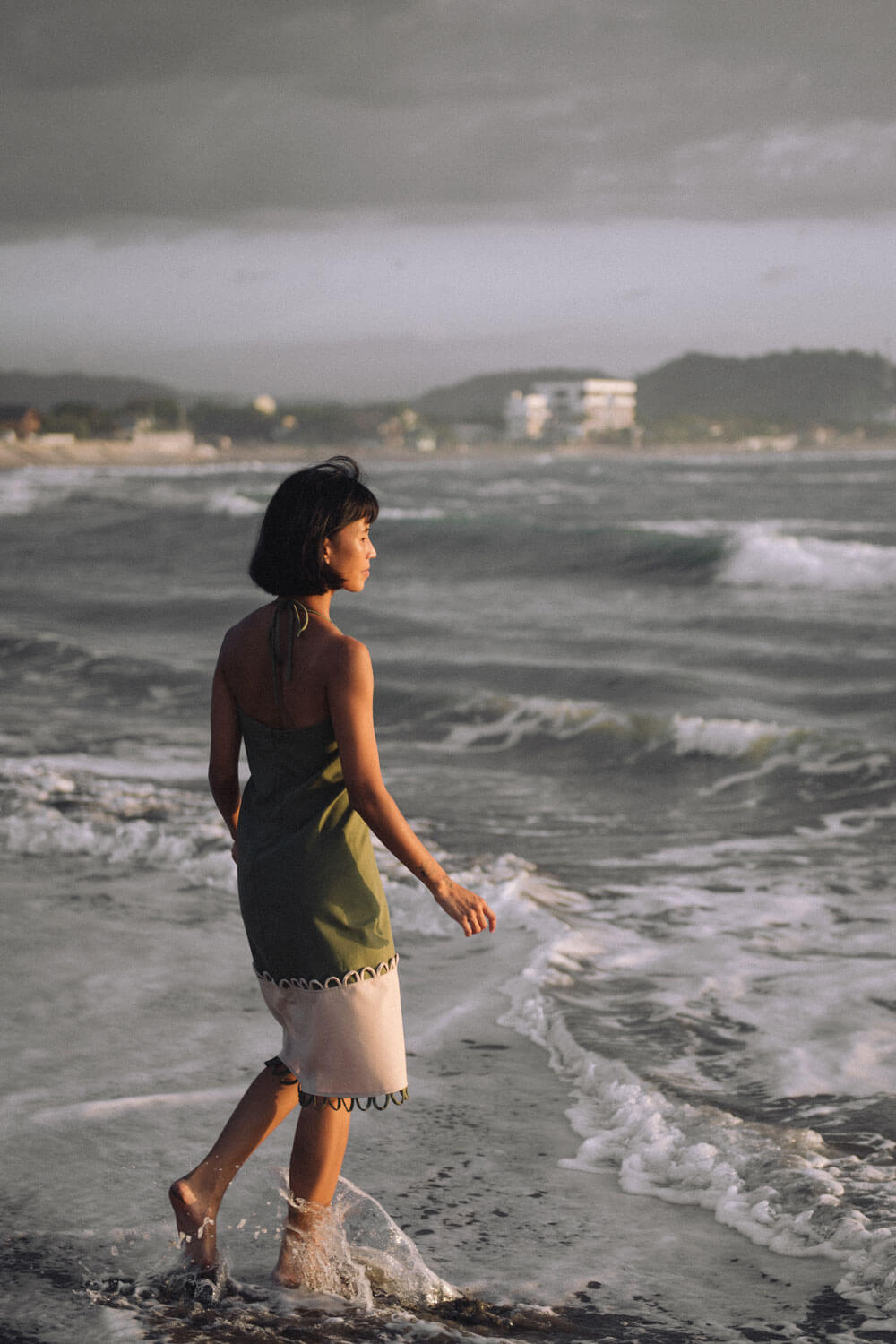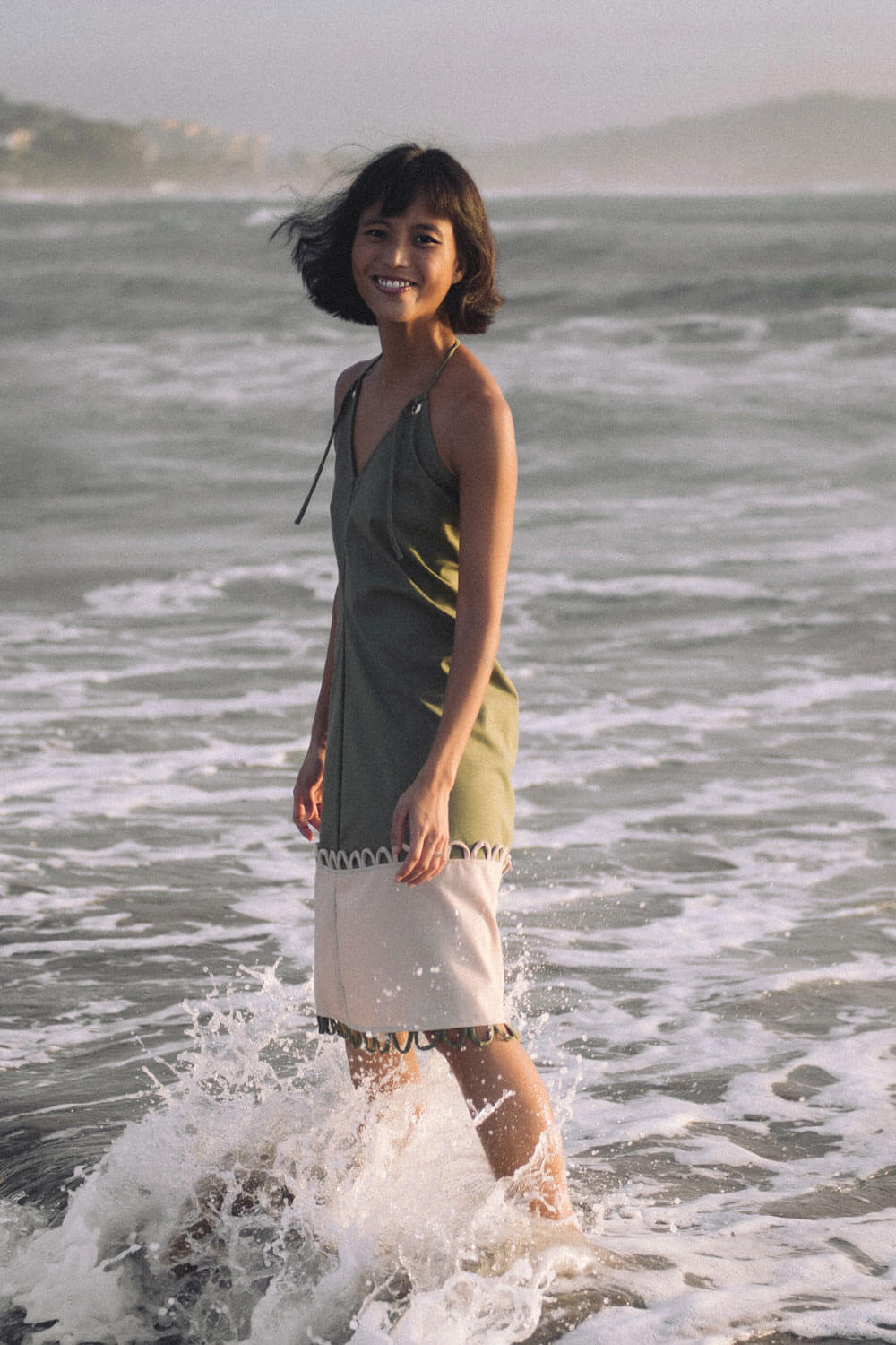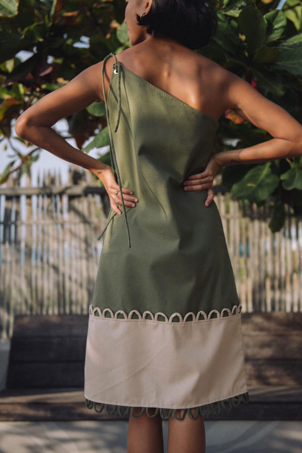 Sienna Asymmetrical Knee-Length Dress / Dark Olive